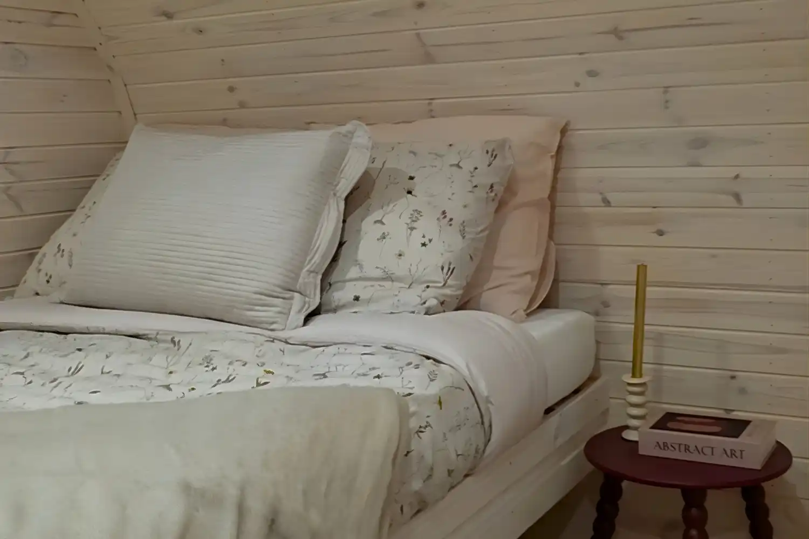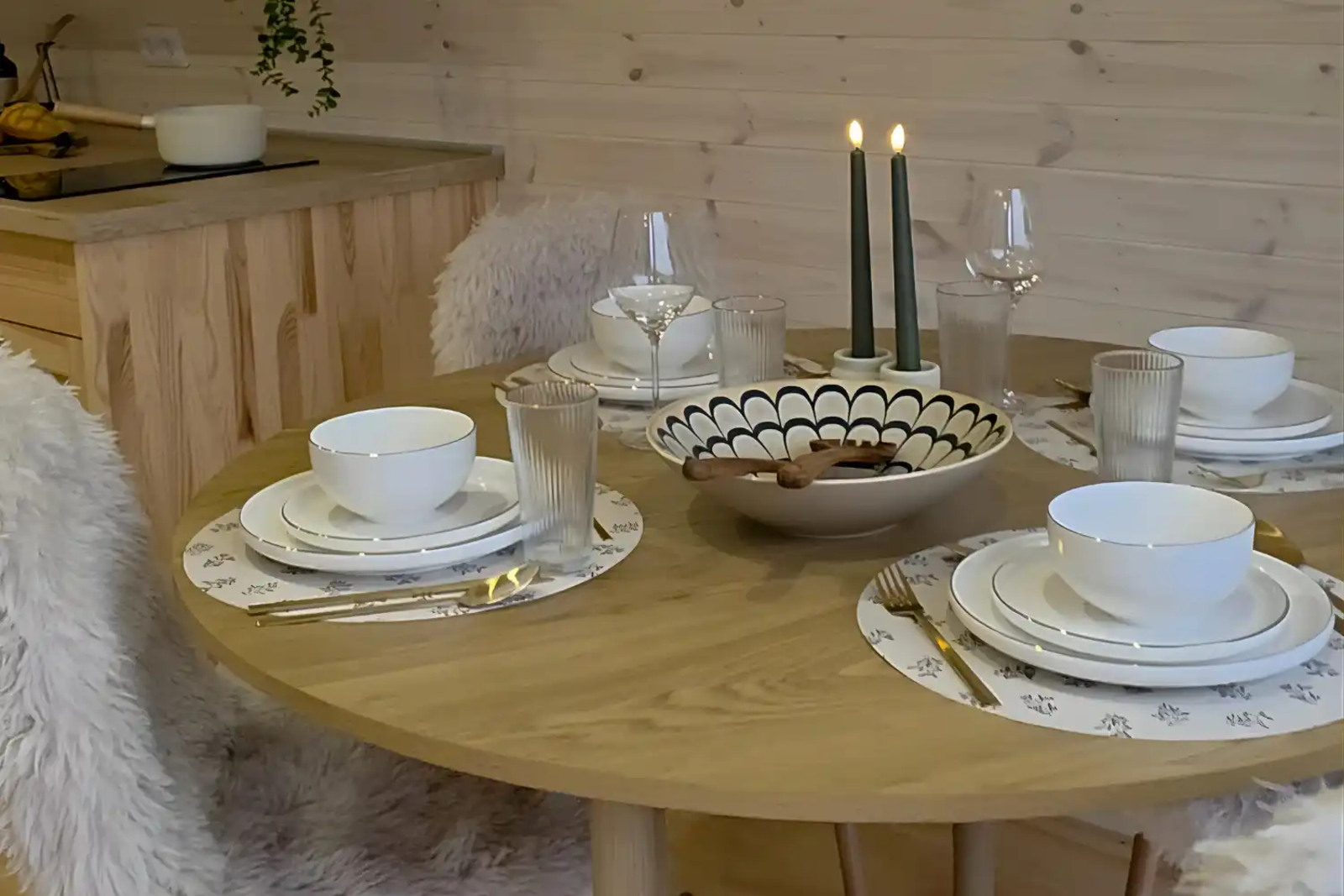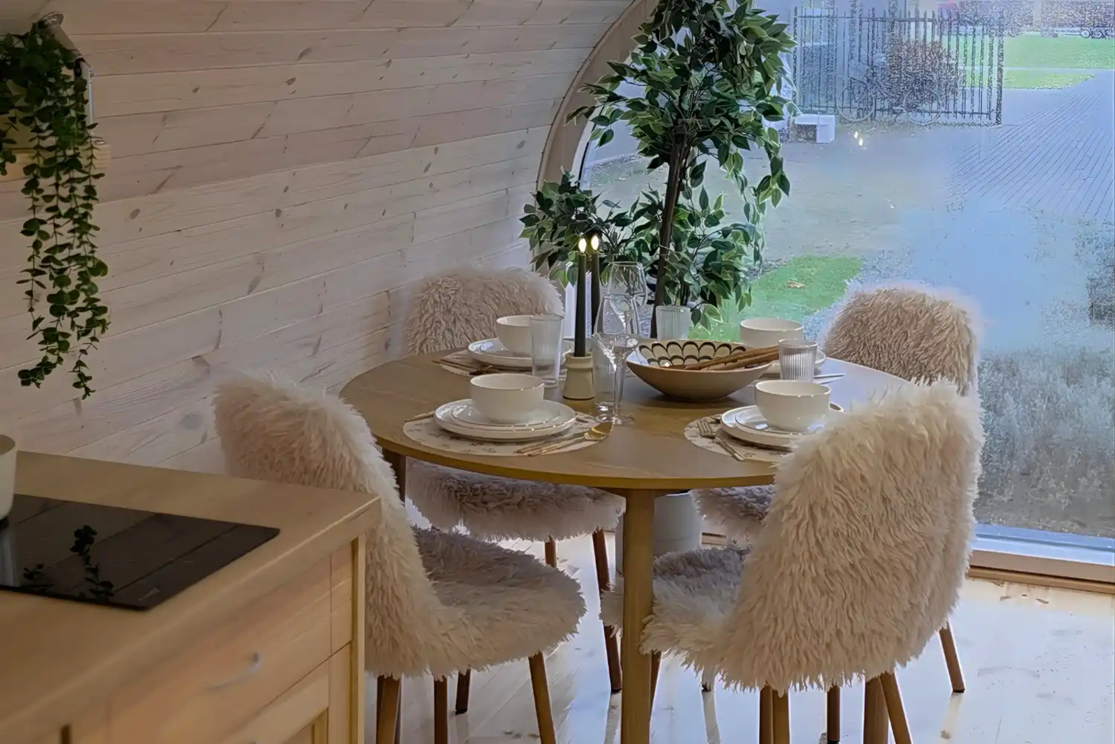 Die Camping-Pods All Seasons können das ganze Jahr über genutzt werden – auch, wenn es draußen friert und schneit. Mit seinen 138 mm starken Wänden aus Kiefernholz, isoliertem Boden und isoliertem Dach lässt dieser Camping-Pod an Wohnlichkeit und Komfort nichts zu wünschen übrig.