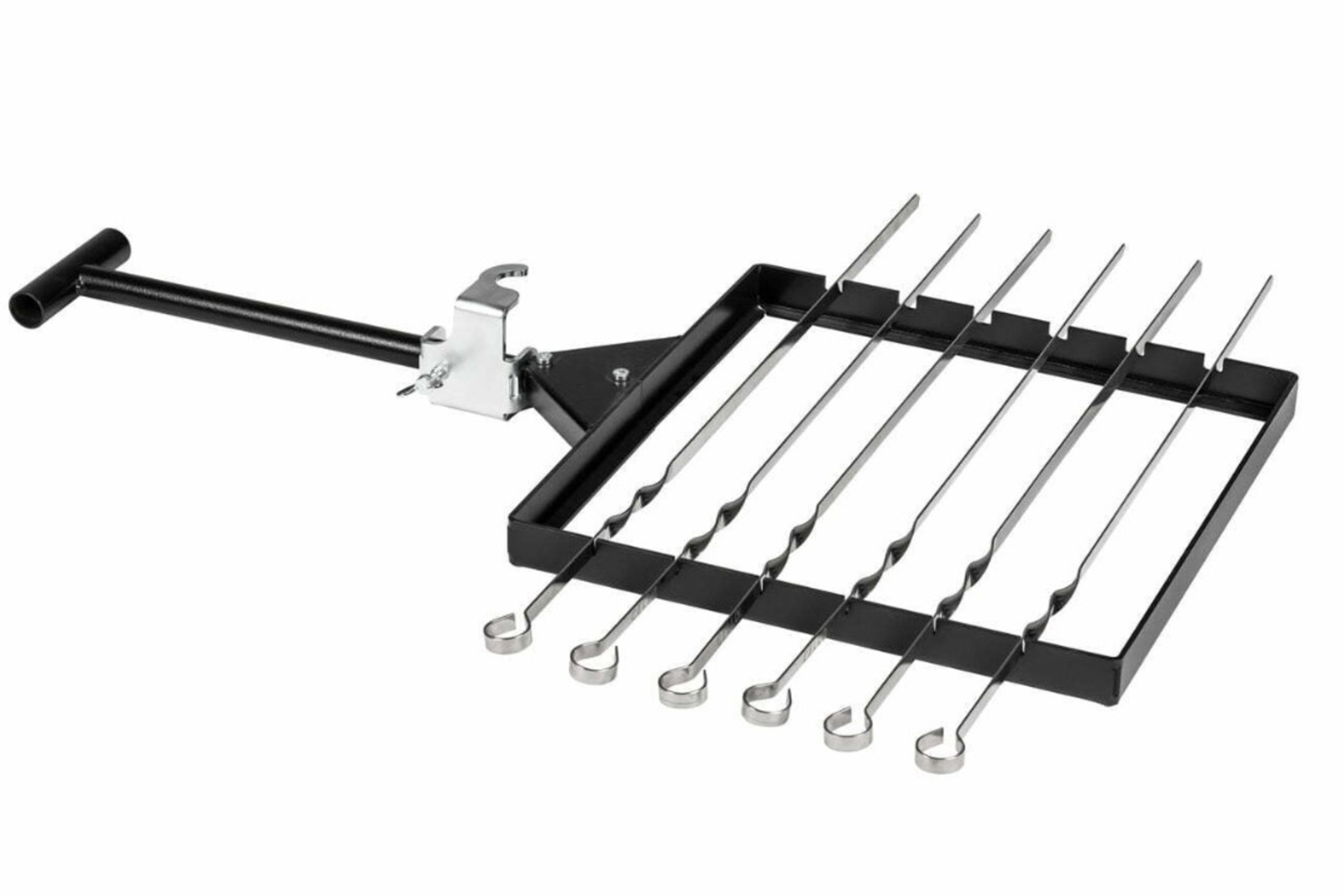Das Schaschlik-Set mit 6 Spießen passt auf alle Polar-Grill-Modelle. Dank des praktischen Befestigungssystems lässt sich der Schaschlik-Halter in verschiedene Positionen drehen. Der Halter lässt sich zum Reinigen einfach abnehmen.