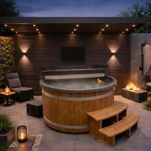 TICRA Whirlpool ⌀180 mit Thermoholz-Oberrand und 5-kW-Wärmepumpe