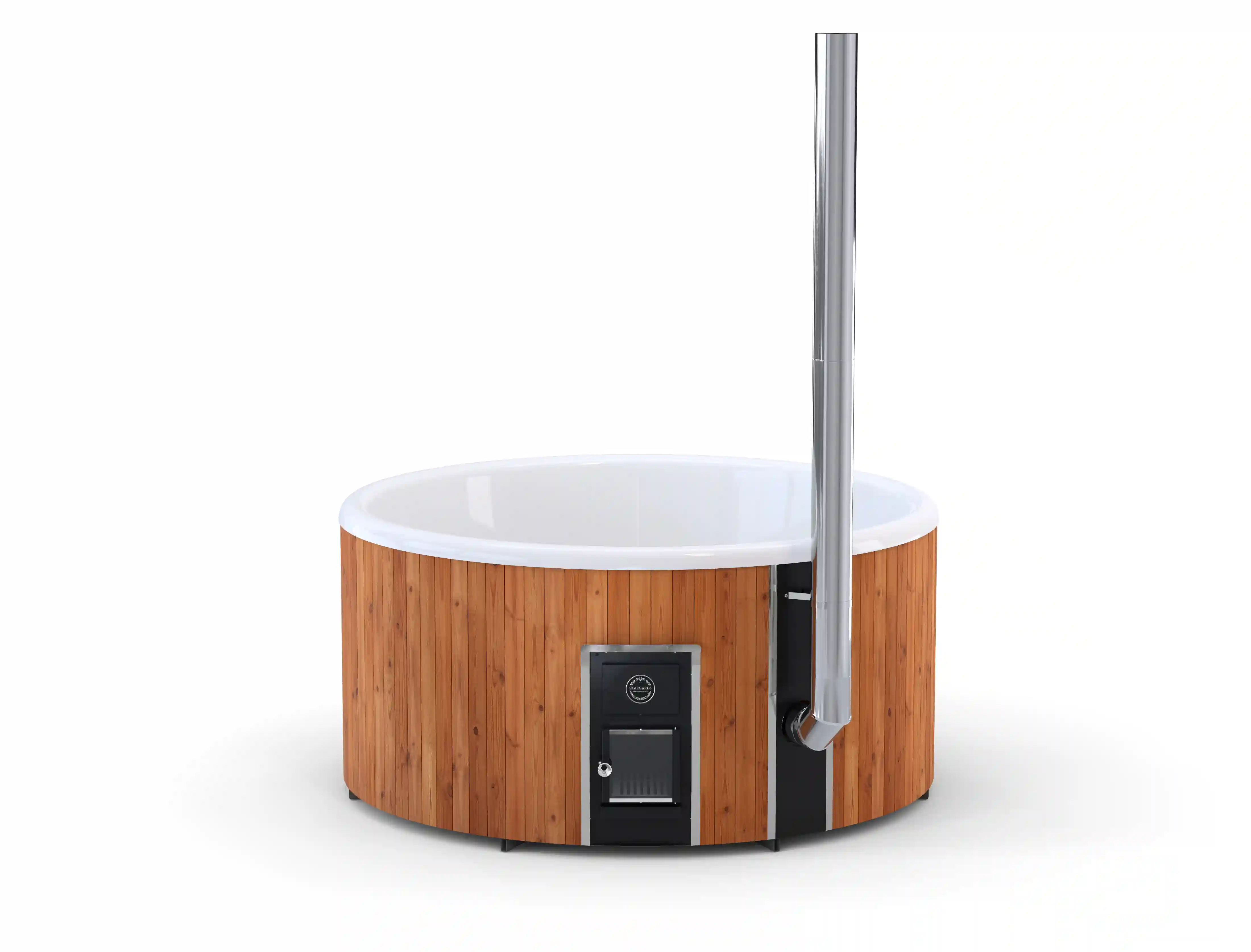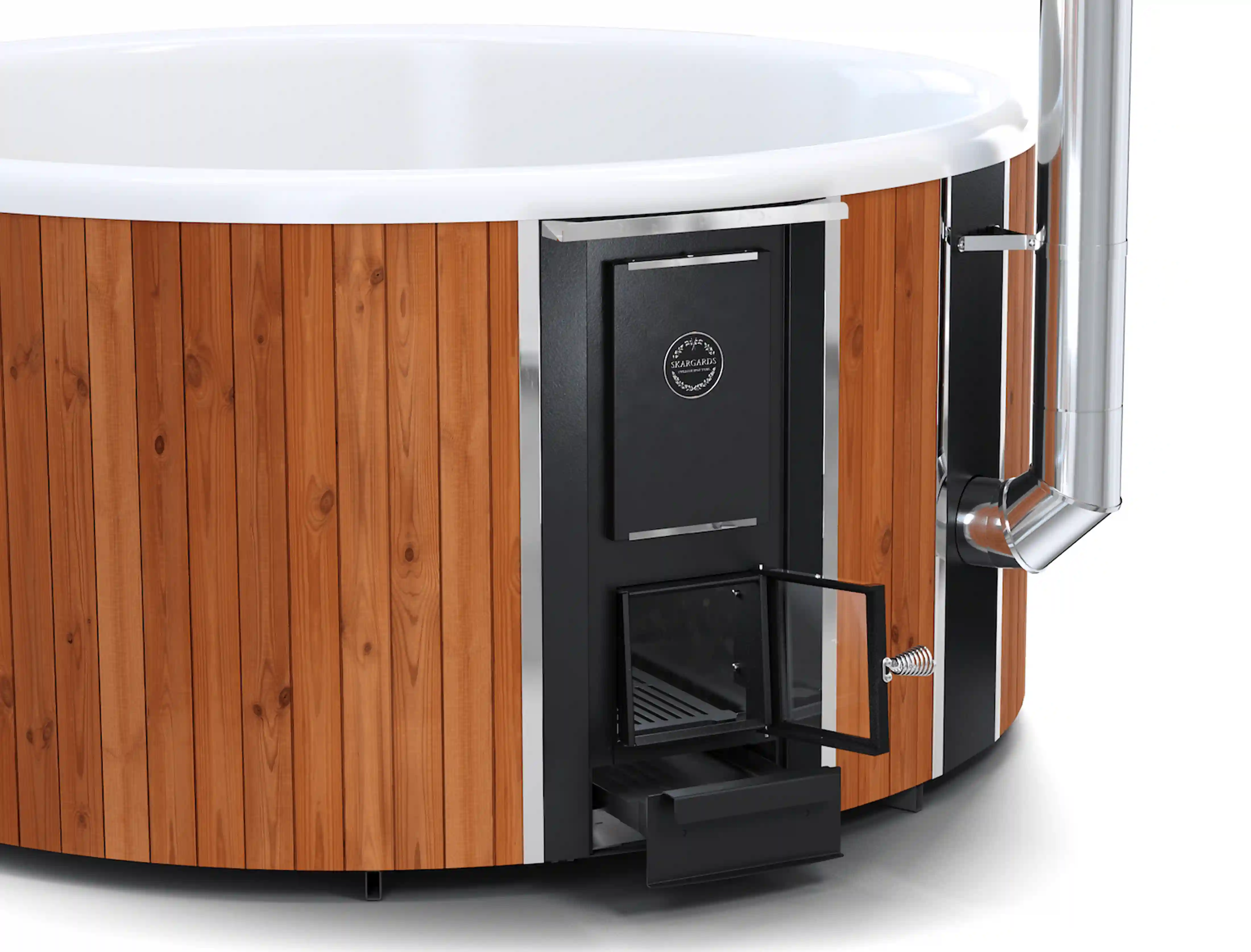 The absolute bestseller at the moment is the Ticra hot tub with an external wood-fired heater. This model is popular due to its efficient heating and added comfort. Because the heater is placed outside the tub, you have more space inside the bath itself, and heat distribution is optimal. Additionally, this hot tub is easy to maintain and safe to use.