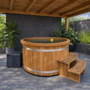 Bain à remous TICRA ⌀180 avec rebord supérieur en thermobois et pompe à chaleur 5 kW