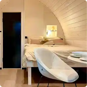 Ervaar pure exclusiviteit met onze premium camping pod: een verfijnde combinatie van design, comfort en duurzaamheid, volledig geproduceerd in Nederland. Met hoogwaardige materialen en een warme, natuurlijke uitstraling creëer je een unieke, luxueuze beleving die jouw locatie onderscheidt, het hele jaar door.
