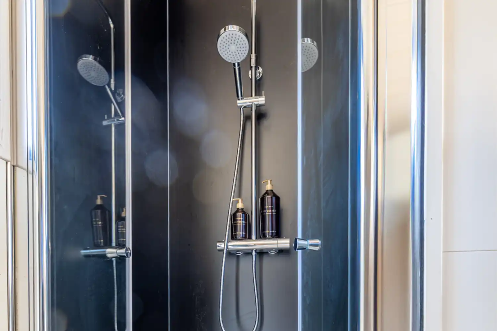 - Luxe badkamer met douche, toilet en wastafelmeubel