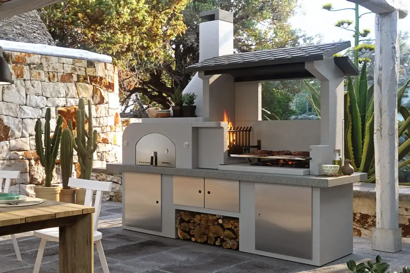 Met deze elegante deuren maak je jouw buitenkeuken helemaal compleet. De buitenkeukens van Palazzetti zijn zeer hoogwaardig afgewerkt en toveren jouw tuin om tot een Zuid-Europees paradijs. Deze deuren passen in de open vakken van onze buitenkeuken modules van 90 cm breed.
