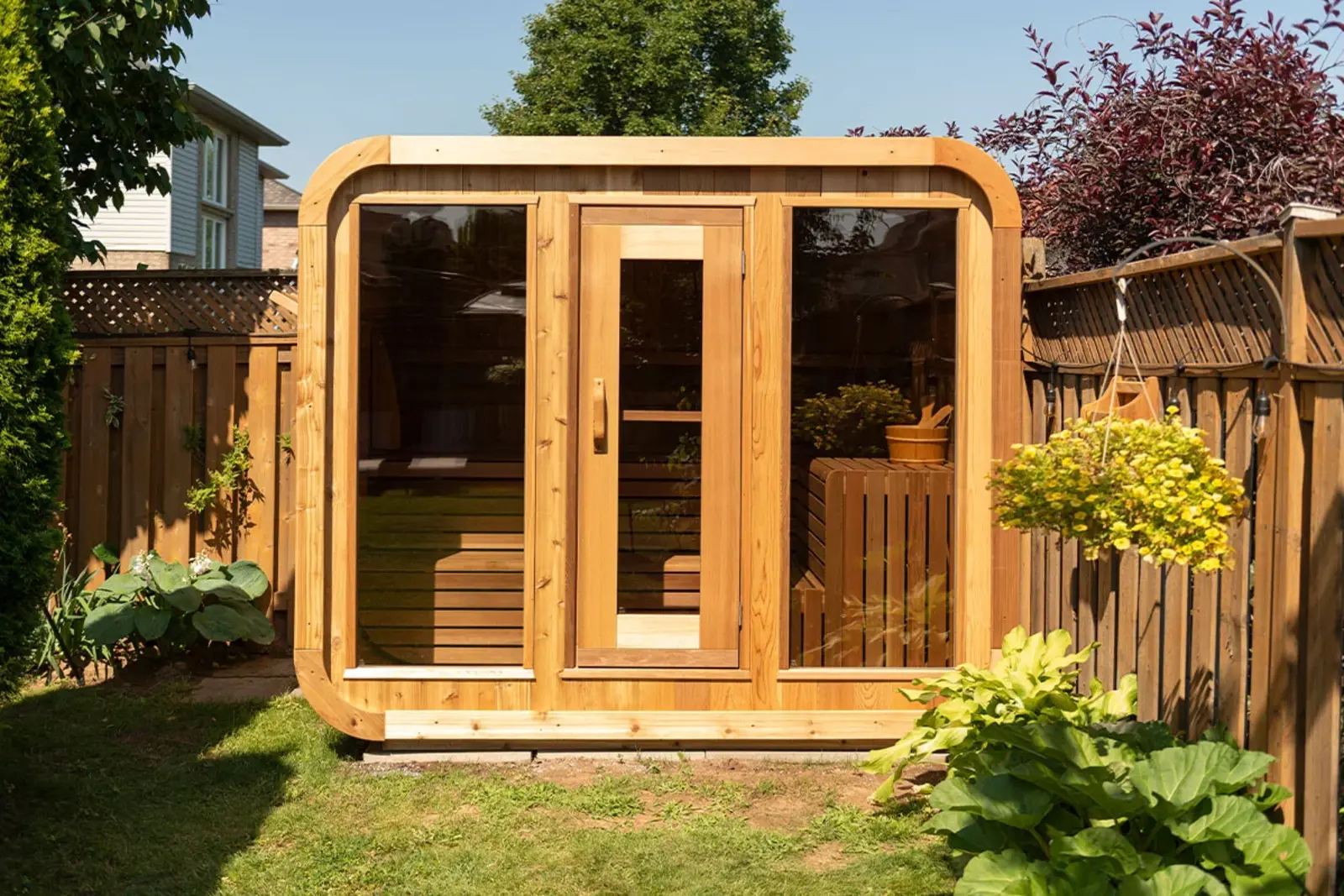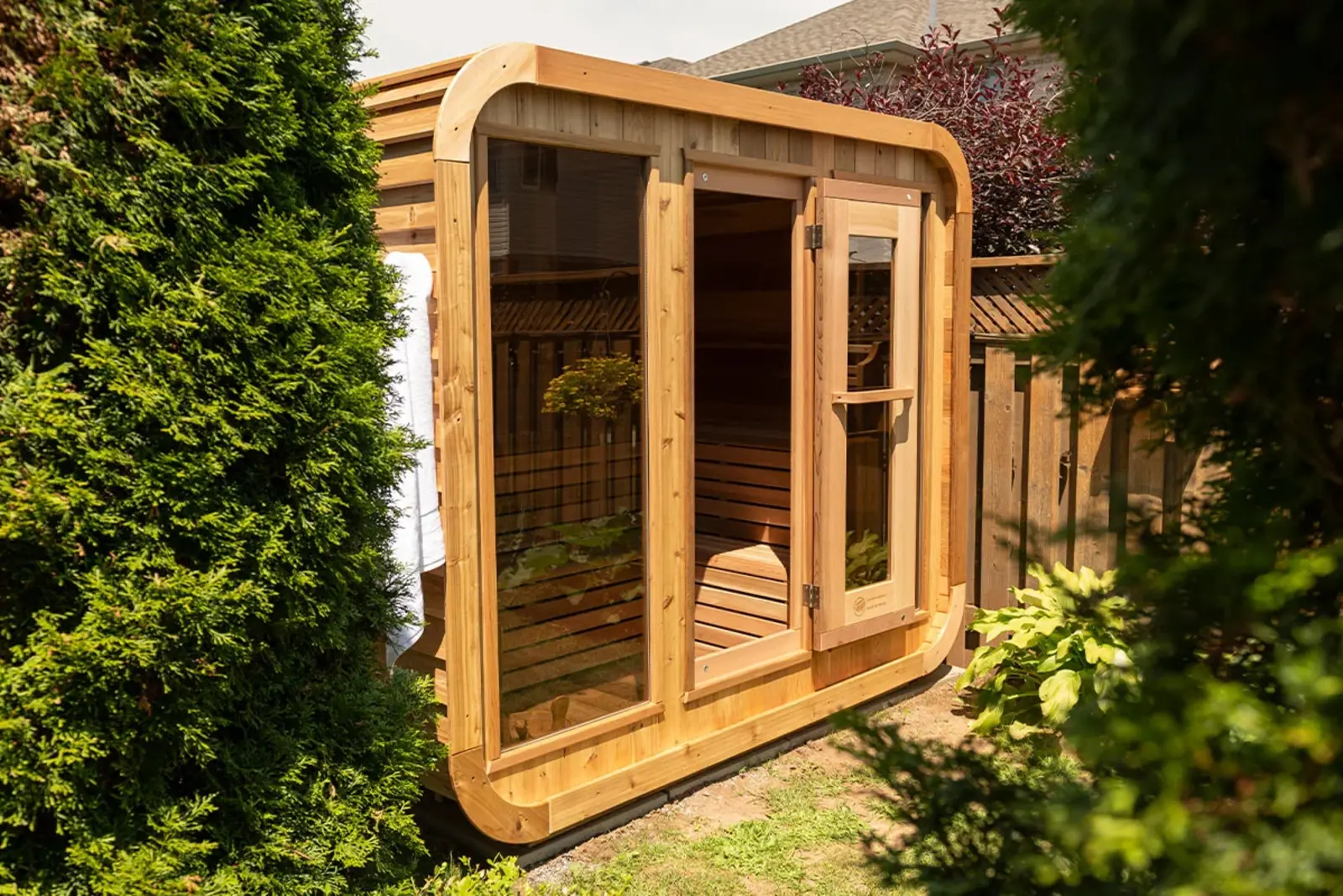 De Luna sauna is een fijne combinatie van strakke rechte lijnen en zachte afgeronde hoeken. Deze buitensauna is vervaardigd van Red Cedar-hout uit de westkant van Canada. Dit uiterst duurzame en uiteraard FSC-gecertificeerde cedar-hout heeft een prachtige uitstraling en een geweldige houtgeur.