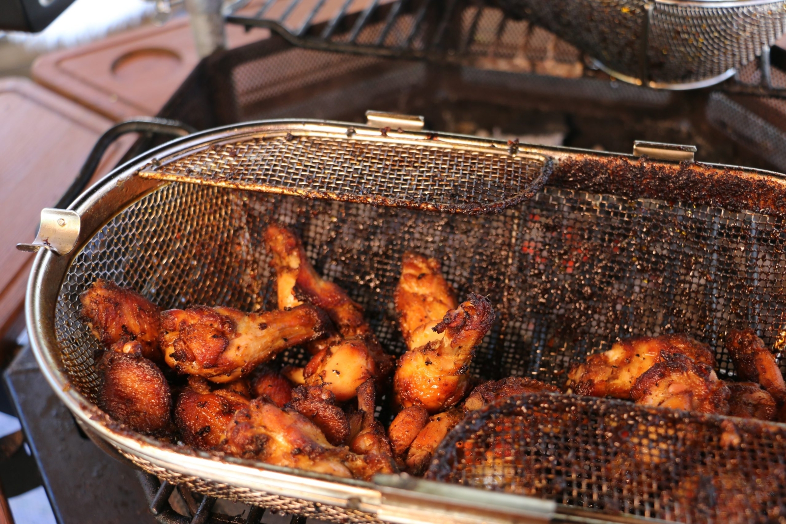 Met de roestvrijstalen rotisseriemand kan je bijvoorbeeld heerlijk krokante kippenvleugels bereiden.
