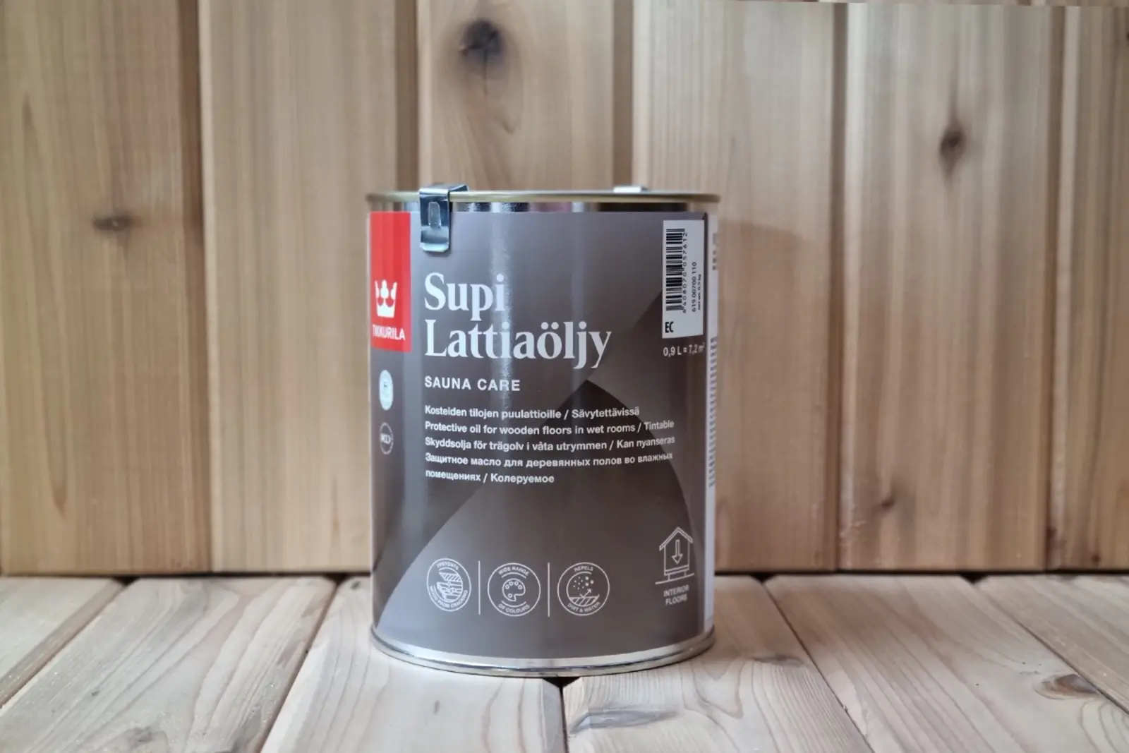 Supi Floor Oil is hét product voor de houten saunavloer. Een watergedragen houtolie, op basis van natuurlijke oliederivaten, voor vloeren in vochtige binnenruimtes. Het beschermt hout tegen vocht en vuil en vermindert het scheuren van het houten oppervlak. De houtolie zorgt voor een vuil- en waterafstotend oppervlak voor de vloeren in sauna's en andere vochtige ruimtes.